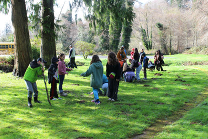 Hands-on activities like water quality testing, native planting, and salmon monitoring.